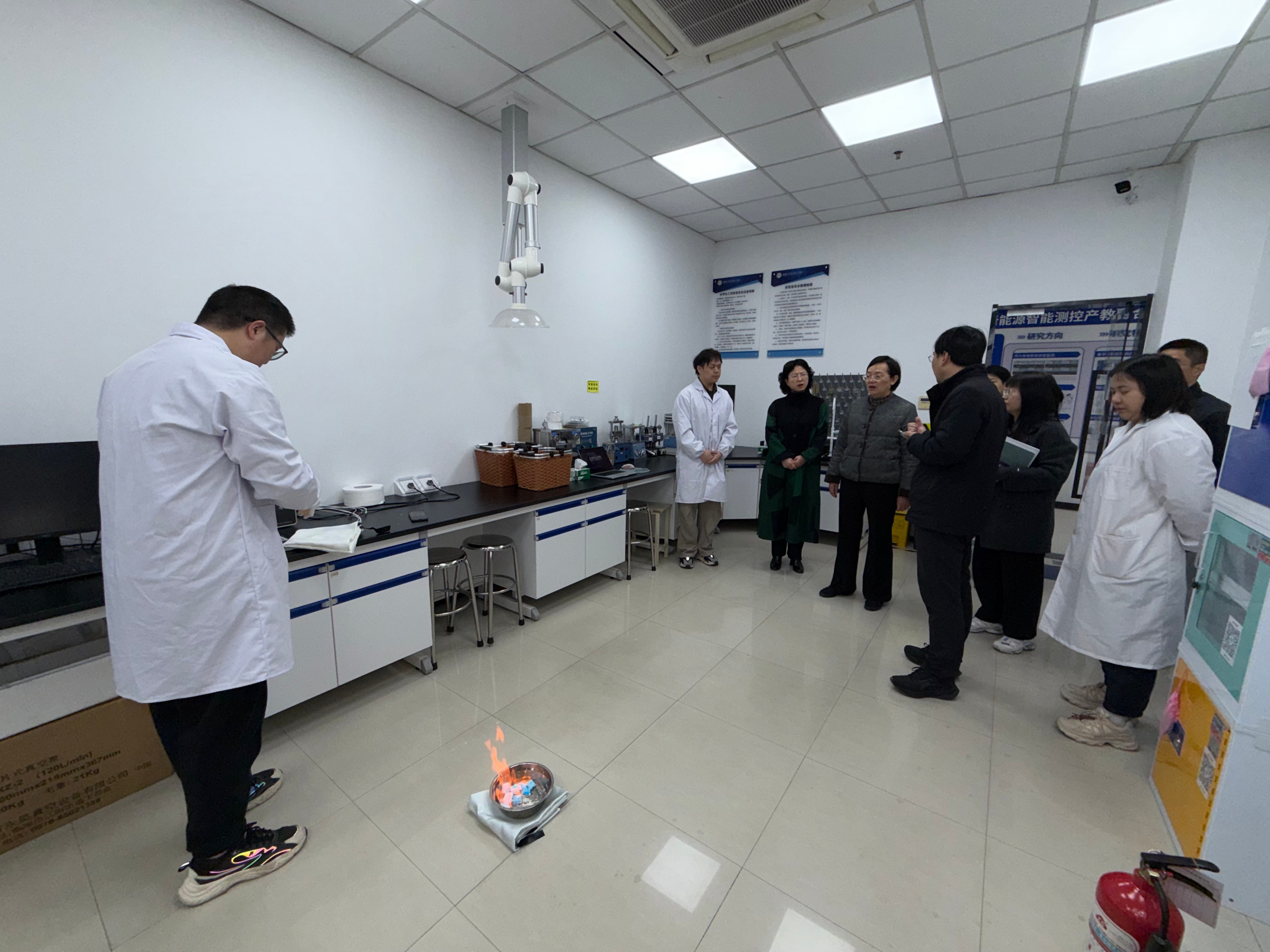 陈玉娟一行现场观摩了实验室安全智能预警系统测试。该系统依托现有监控、融合深度学习算法,可毫秒级精准识别明火违规使用等六大类安全隐患,实现分级告警与轨迹追溯。陈玉娟对系统给予高度评价,指出其以科技赋能实验室安全管理,大幅提升隐患排查的及时性、精准性和智能化水平,为校园实验室安全筑牢科技屏障。随后一行人深入各学院实验室一线,实地查看危化品管理、废弃物处置等关键环节落实情况,仔细查阅安全管理台账、操作记录等资料,详细了解安全责任体系落实、实验室准入及师生安全培训等情况,对各学院相关工作成效予以认可,并对检查发现的问题提出整改要求、明确整改时限。